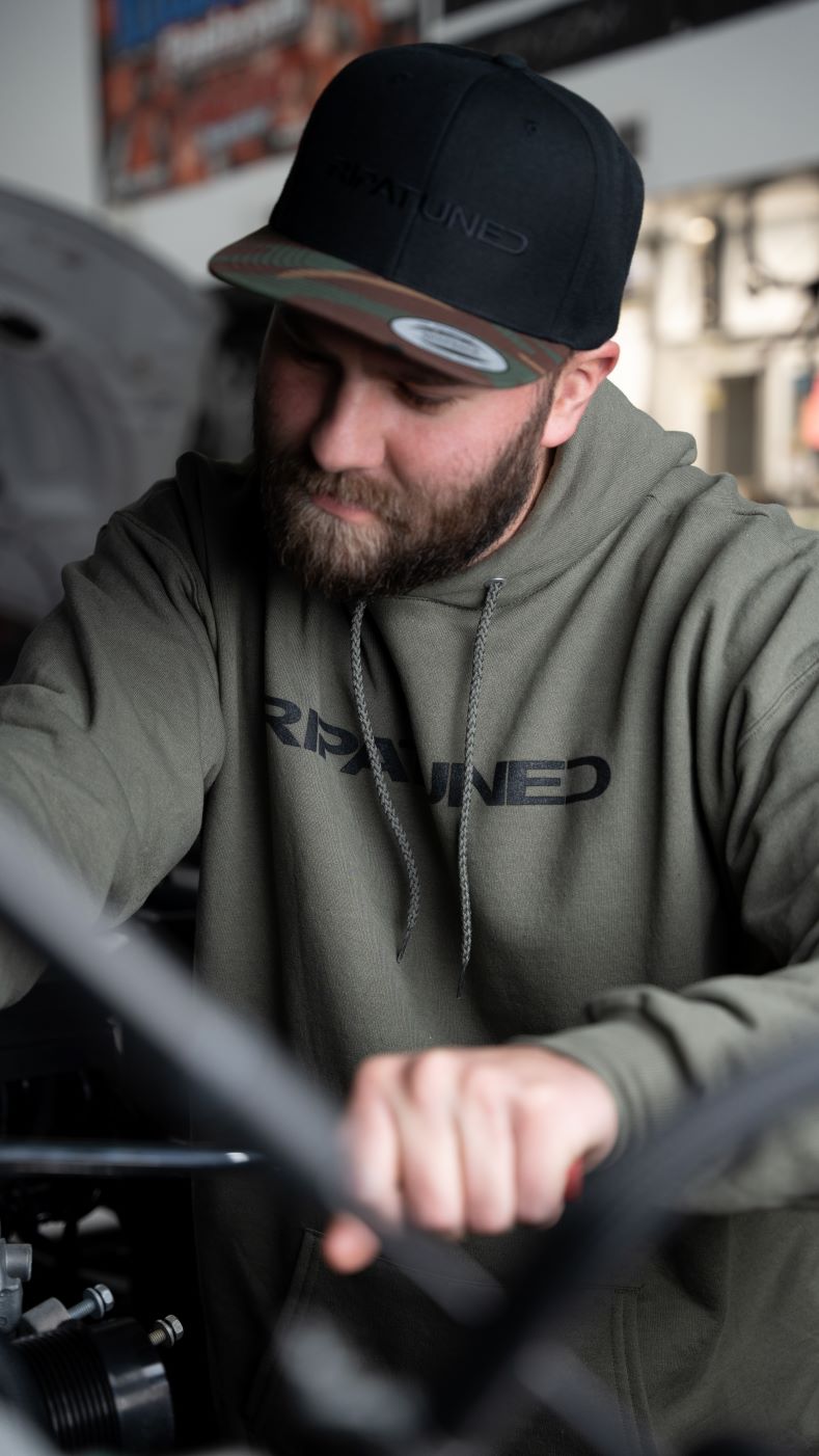 From the Originals collection. Original Ripatuned Hoodie with chest logo. Currently available in the colors Black, Grey and Fatigue Green